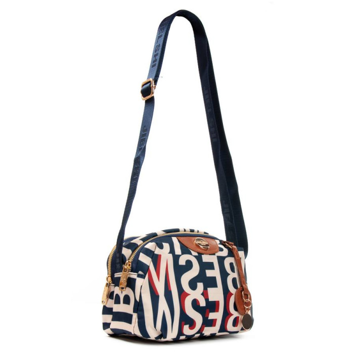 Жіноча сумочка крос боді. Виготовлена з водовідштовхувального текстилю. Два відділення, закриваються на блискавку. Всередині є бічна кишеня на блискавці. На зворотному боці знаходиться кишеня на блискавці.