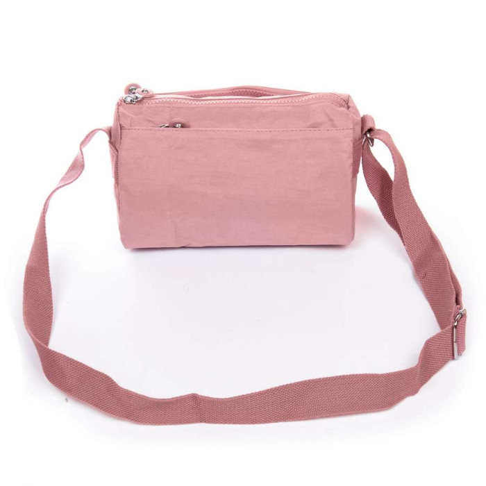 Жіноча сумочка крос боді. Виготовлена ​​з водовідштовхувального текстилю. Два відділення, що закриваються на блискавку. Усередині є бічна кишеня на блискавці та відкрита кишеня з безліччю відсіків для візитних карток. На фасаді та на звороті знаходяться місткі кишені на блискавці.