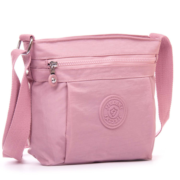 Жіноча сумка крос боді. Виготовлена з водовідштовхувального текстилю. Одне відділення закривається на блискавку. Усередині є бічна кишеня на блискавці і відкрита подвійна кишеня. На фасаді та на звороті знаходяться місткі кишені на блискавці.