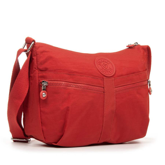Жіноча сумка крос боді. Виготовлена з водовідштовхувального текстилю. Одне відділення закривається на блискавку. Усередині є бічна кишеня на блискавці і відкрита подвійна кишеня. На фасаді є дві кишені на блискавці і дві відкриті кишені. На звороті знаходиться містка кишеня на блискавці.