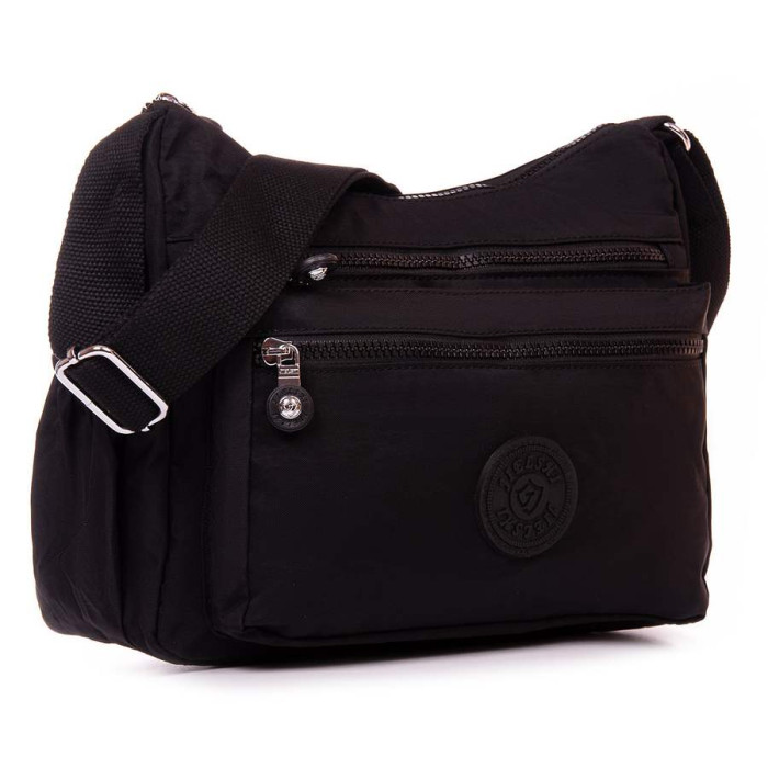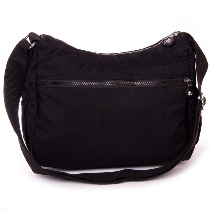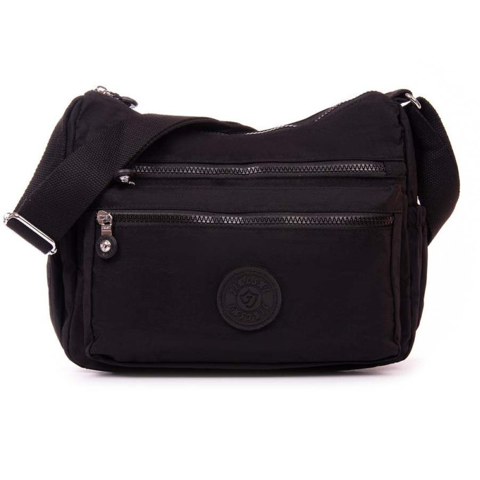 Жіноча сумка крос боді. Виготовлена з водовідштовхувального текстилю. Подвійне відділення закривається на блискавку. Усередині є кишеня-перегородка на блискавці, бічна кишеня на блискавці та відкрита подвійна кишеня. На фасаді розташовані три великі кишені на блискавці, а на звороті знаходяться одна містка кишеня на блискавці. На торцях сумочки є невеликі кишені на резинці.