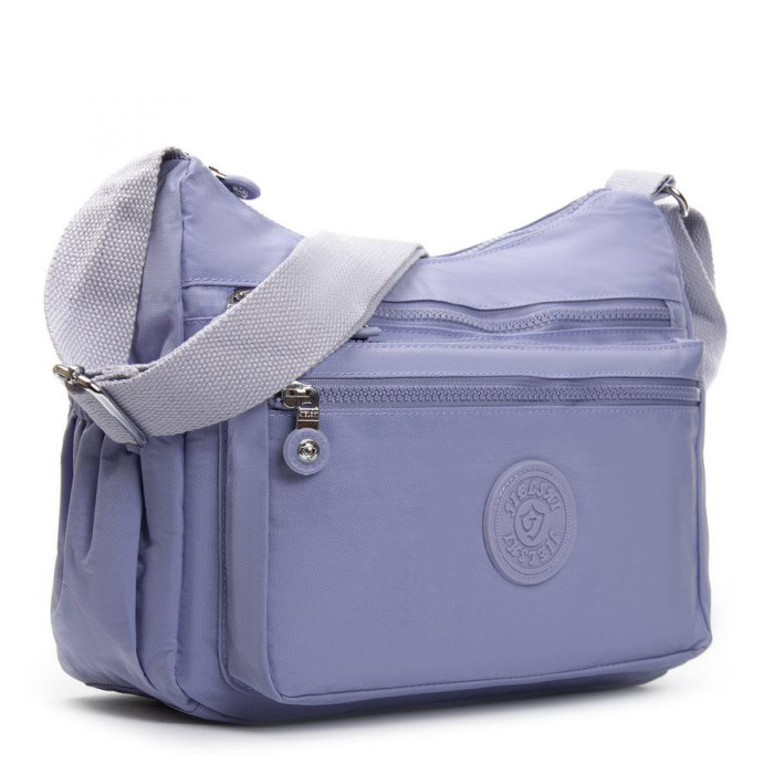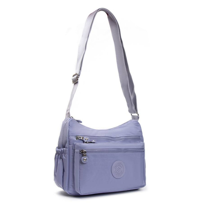 Жіноча сумка крос боді. Виготовлена з водовідштовхувального текстилю. Подвійне відділення закривається на блискавку. Усередині є кишеня-перегородка на блискавці, бічна кишеня на блискавці та відкрита подвійна кишеня. На фасаді розташовані три великі кишені на блискавці, а на звороті знаходяться одна містка кишеня на блискавці. На торцях сумочки є невеликі кишені на резинці.