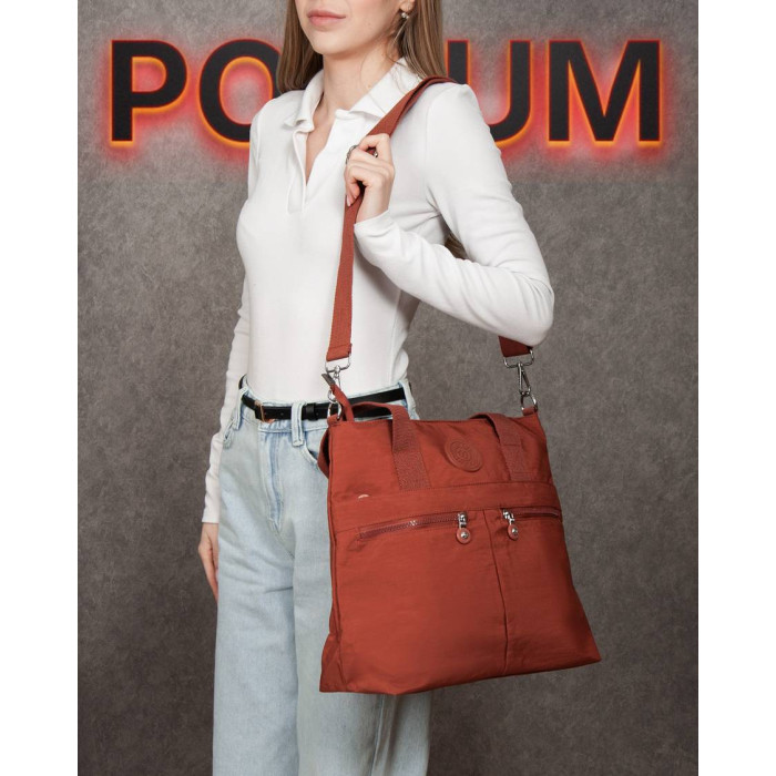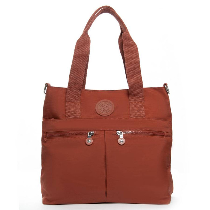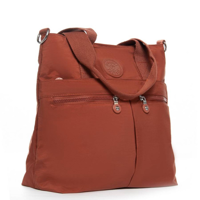 Виготовлена з водовідштовхувального щільного текстилю. Закривається на блискавку. Всередині знаходиться основне і додаткове відділення, розділені кишенею-перегородкою на блискавці, велика бічна кишеня на блискавці і відкрита подвійна кишеня. На фасаді знаходиться додаткове відділення на блискавці і дві кишені на блискавці. На зворотному боці сумки є містка кишеня на блискавці.
