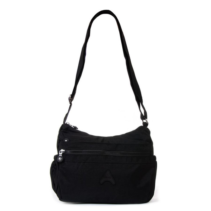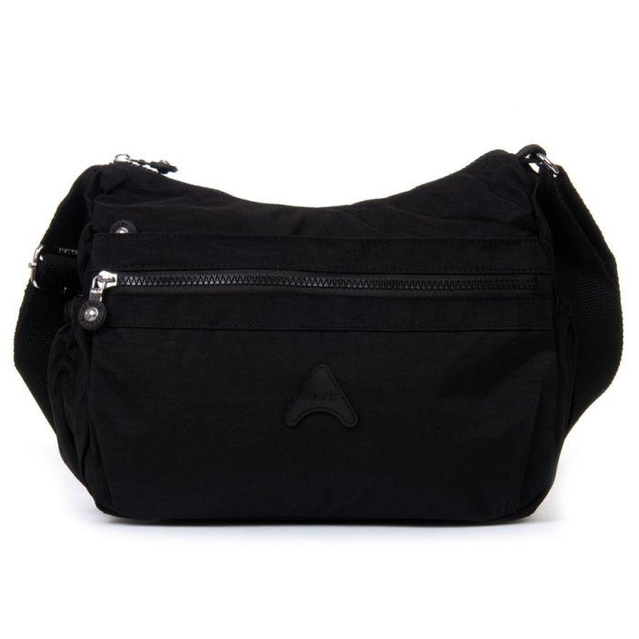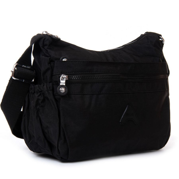 Жіноча сумка крос-боді Jielshi. Виготовлена з водовідштовхувального текстилю. Подвійне відділення закривається на блискавку. Усередині є кишеня-перегородка на блискавці, велика відкрита бічна кишеня та кишеня на блискавці. На фасаді розташовані дві великі кишені на блискавці, а на звороті знаходиться одна містка кишеня на блискавці. На торцях сумочки є невеликі відкриті кишені на резинці.
