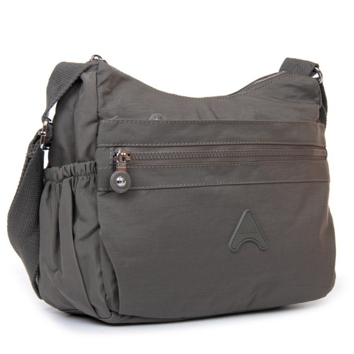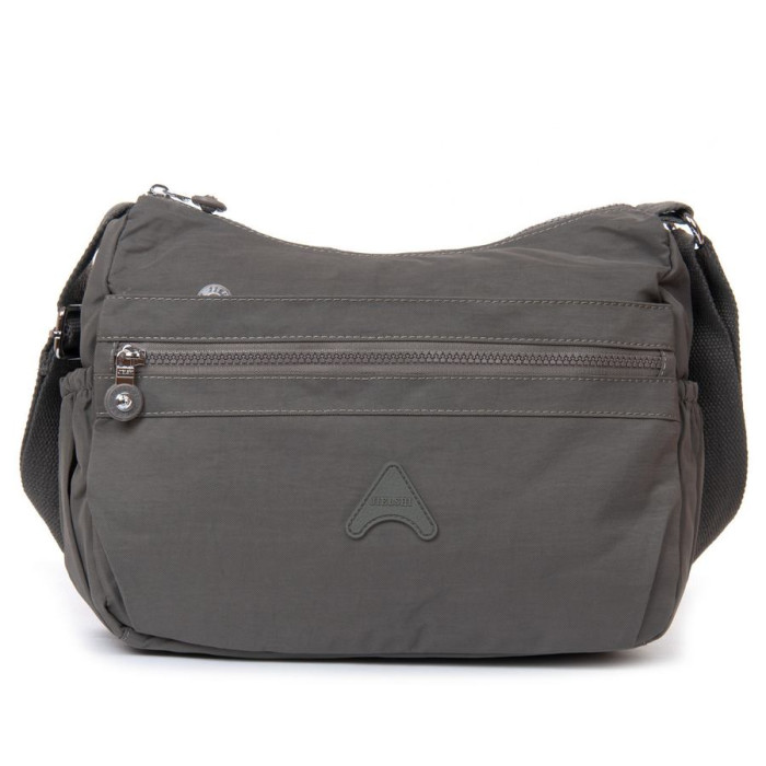 Жіноча сумка крос-боді Jielshi. Виготовлена з водовідштовхувального текстилю. Подвійне відділення закривається на блискавку. Усередині є кишеня-перегородка на блискавці, велика відкрита бічна кишеня та кишеня на блискавці. На фасаді розташовані дві великі кишені на блискавці, а на звороті знаходиться одна містка кишеня на блискавці. На торцях сумочки є невеликі відкриті кишені на резинці.