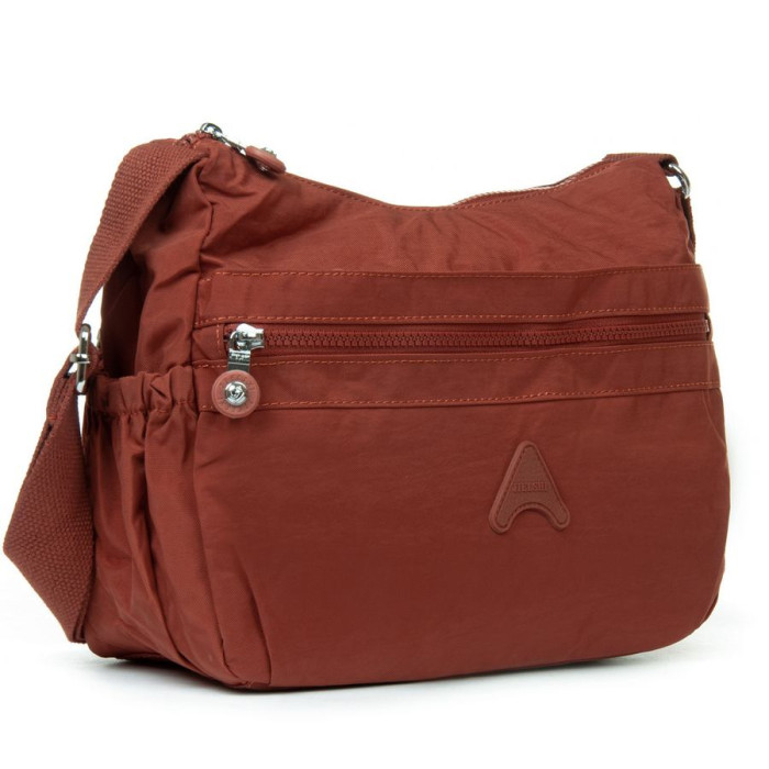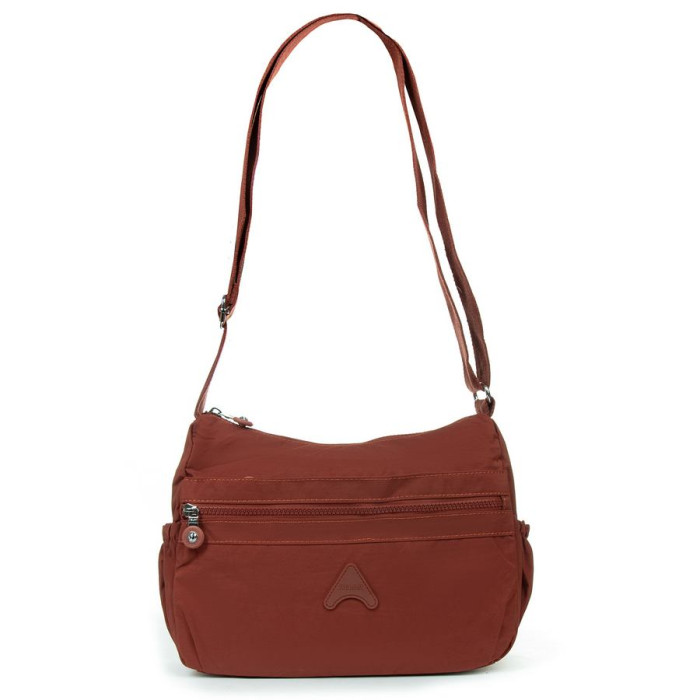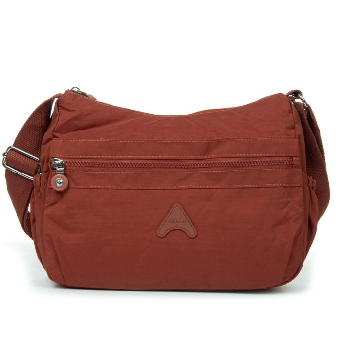 Жіноча сумка крос-боді Jielshi. Виготовлена ​​з водовідштовхувального текстилю. Подвійне відділення закривається на блискавку. Усередині є кишеня-перегородка на блискавці, велика відкрита бічна кишеня та кишеня на блискавці. На фасаді розташовані дві великі кишені на блискавці, а на звороті знаходиться одна містка кишеня на блискавці. На торцях сумочки є невеликі відкриті кишені на резинці.