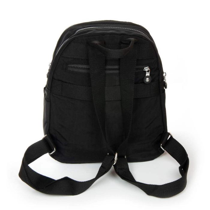Жіночий рюкзак. Виготовлений із водовідштовхувального текстилю. Два відділення, що закриваються на блискавці. В основному відділенні є кишеня-перегородка на блискавці та велика бічна кишеня на блискавці. На фасаді та зворотному боці рюкзака знаходяться місткі кишені на блискавці. А на торцях є відкриті невеликі кишені. На звороті рюкзака також є кріплення на ручку валізи.