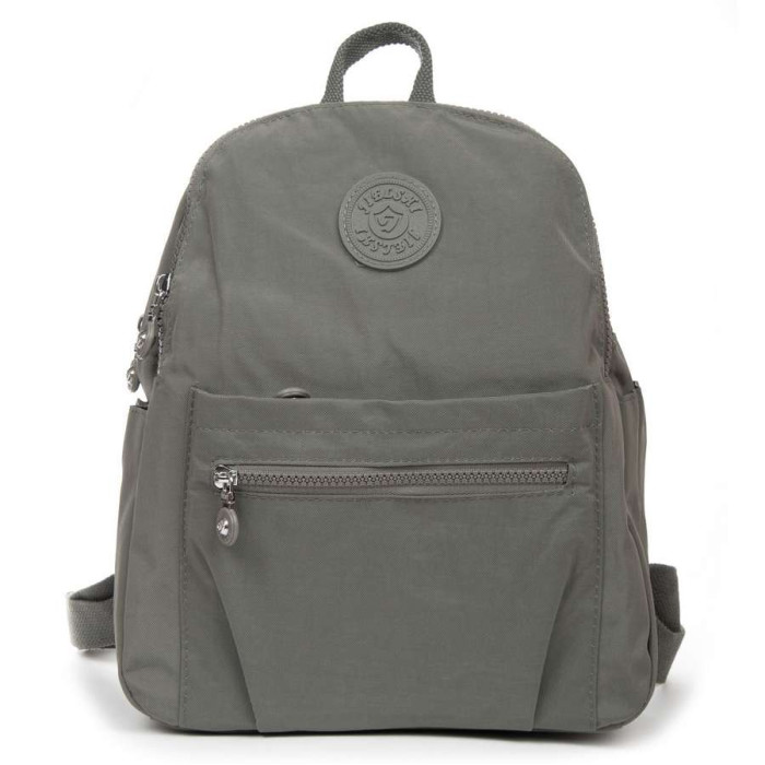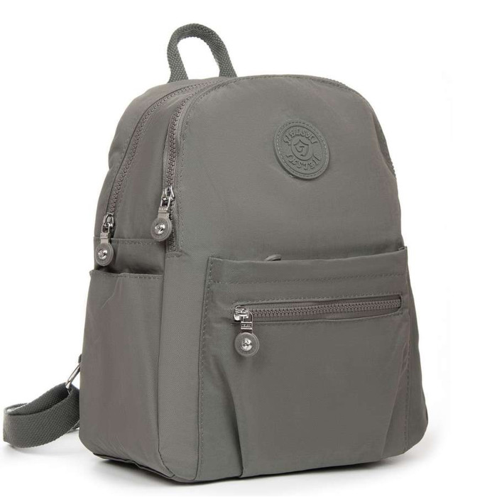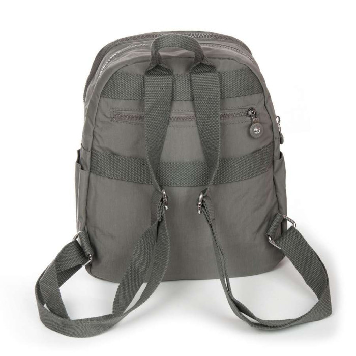 Жіночий рюкзак. Виготовлений із водовідштовхувального текстилю. Два відділення, що закриваються на блискавці. В основному відділенні є кишеня-перегородка на блискавці та велика бічна кишеня на блискавці. На фасаді та зворотному боці рюкзака знаходяться місткі кишені на блискавці. А на торцях є відкриті невеликі кишені. На звороті рюкзака також є кріплення на ручку валізи.