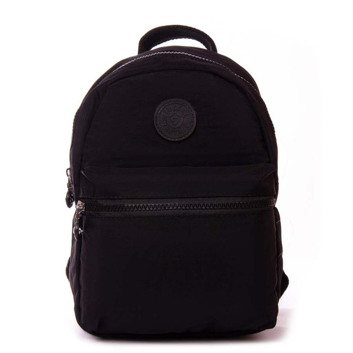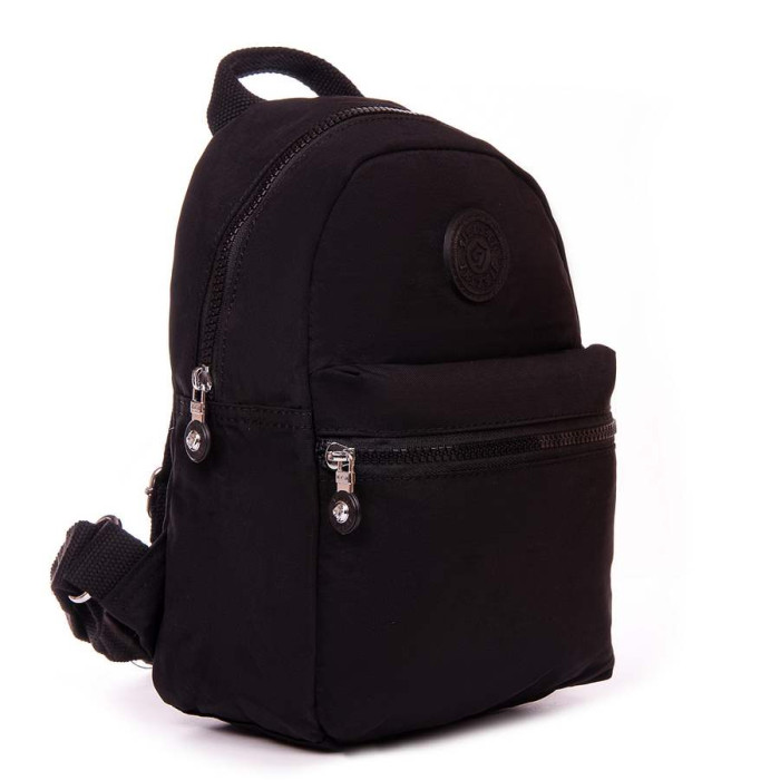 Сумка жіноча - рюкзак. Виготовлена з водовідштовхувального текстилю. Одне відділення закривається на блискавку. Усередині є бічна кишеня на блискавці та відкрита кишеня. На фасаді рюкзака знаходиться містка кишеня на блискавці.