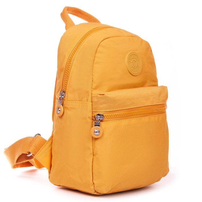 Сумка жіноча - рюкзак. Виготовлена з водовідштовхувального текстилю. Одне відділення закривається на блискавку. Усередині є бічна кишеня на блискавці та відкрита кишеня. На фасаді рюкзака знаходиться містка кишеня на блискавці.