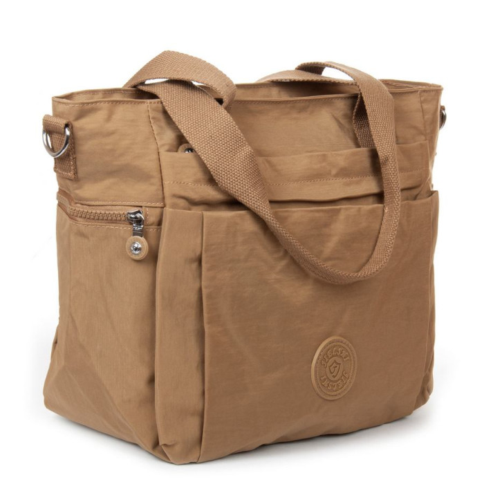 Жіноча сумка Jielshi. Виготовлена з водовідштовхувального текстилю. Одне відділення закривається на блискавку. Усередині відділення є велика бічна кишеня на блискавці і відкрита подвійна кишеня. На фасаді, зворотному боці та торцях сумки розташовані місткі кишені на блискавці.