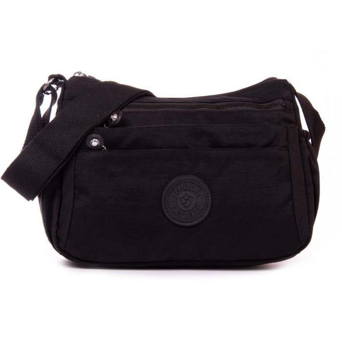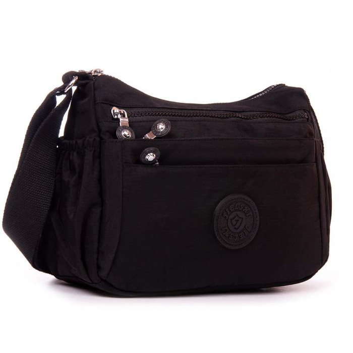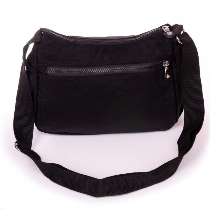 Жіноча сумка крос боді. Виготовлена з водовідштовхувального текстилю. Подвійне відділення закривається на блискавку. Усередині є кишеня-перегородка на блискавці та бічна кишеня на блискавці. На фасаді розташовані три великі кишені на блискавці, а на звороті знаходиться одна містка кишеня на блискавці. На торцях сумочки є невеликі кишені на резинці.