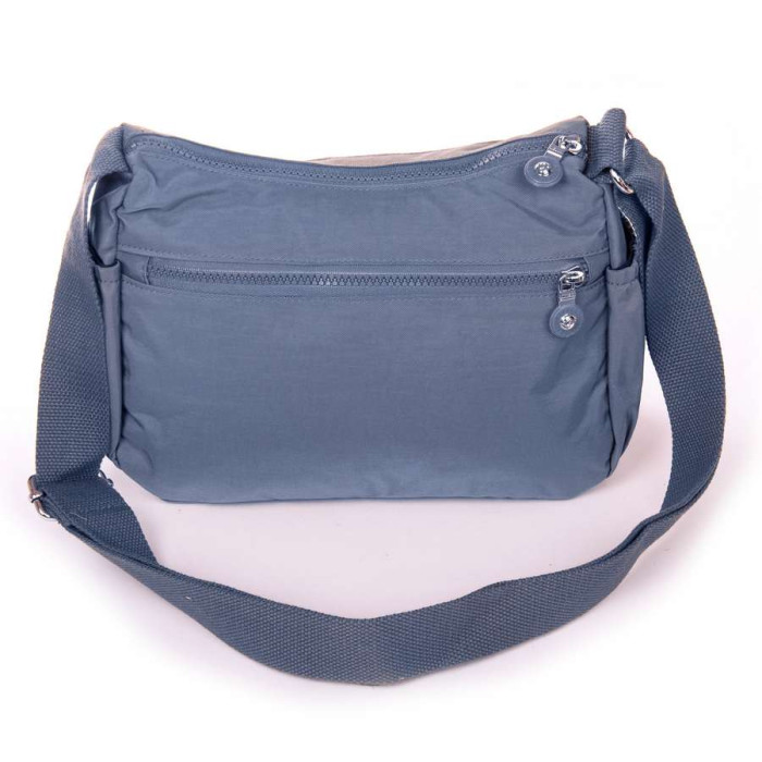Жіноча сумка крос боді. Виготовлена ​​з водовідштовхувального текстилю. Подвійне відділення закривається на блискавку. Усередині є кишеня-перегородка на блискавці та бічна кишеня на блискавці. На фасаді розташовані три великі кишені на блискавці, а на звороті знаходиться одна містка кишеня на блискавці. На торцях сумочки є невеликі кишені на резинці.