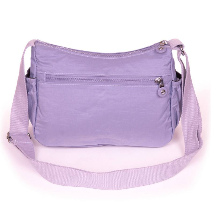 Жіноча сумка крос боді. Виготовлена з водовідштовхувального текстилю. Подвійне відділення закривається на блискавку. Усередині є кишеня-перегородка на блискавці та бічна кишеня на блискавці. На фасаді розташовані три великі кишені на блискавці, а на звороті знаходиться одна містка кишеня на блискавці. На торцях сумочки є невеликі кишені на резинці.
