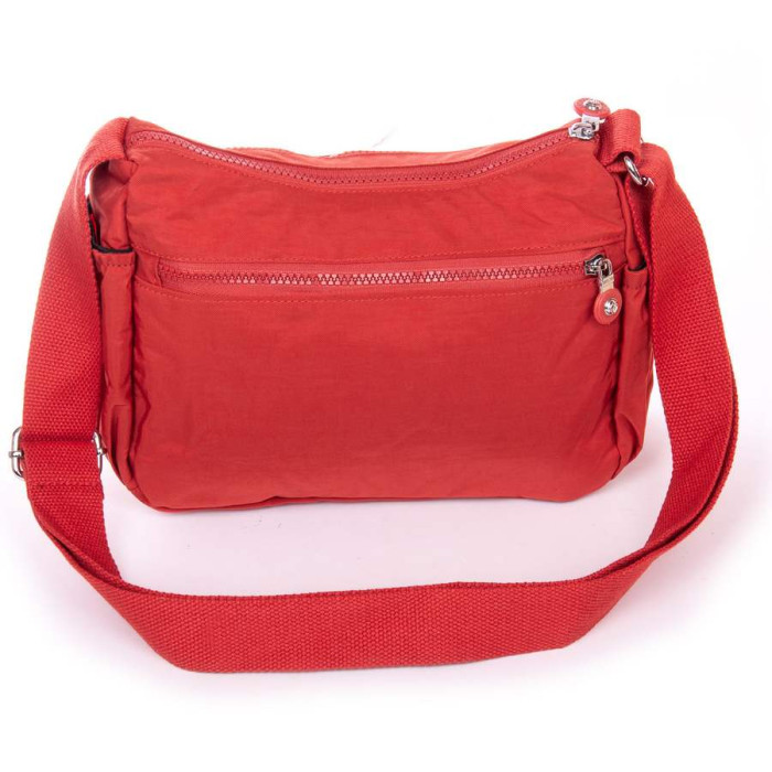 Жіноча сумка крос боді. Виготовлена з водовідштовхувального текстилю. Подвійне відділення закривається на блискавку. Усередині є кишеня-перегородка на блискавці та бічна кишеня на блискавці. На фасаді розташовані три великі кишені на блискавці, а на звороті знаходиться одна містка кишеня на блискавці. На торцях сумочки є невеликі кишені на резинці.