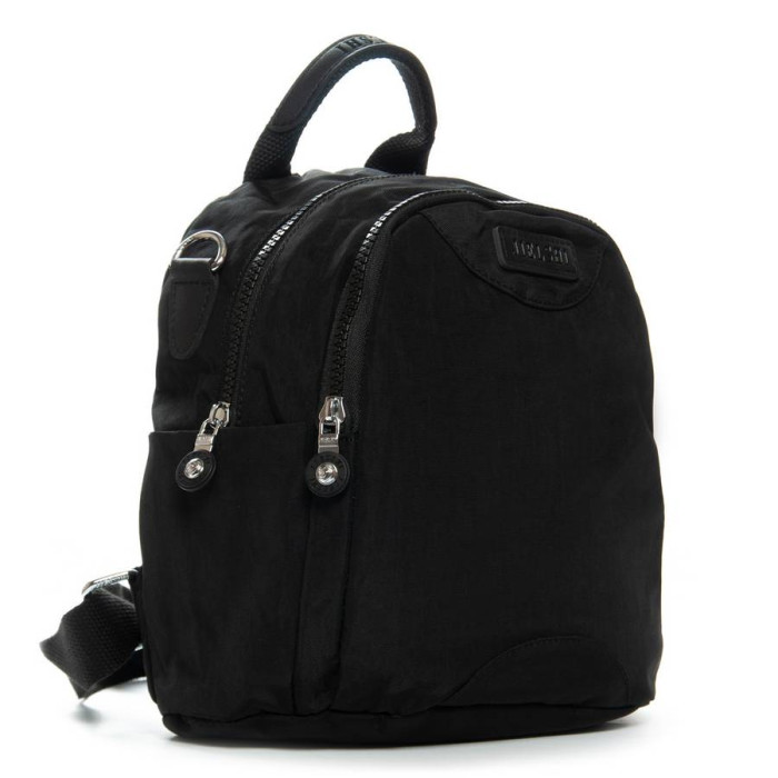 Виготовлений з водовідштовхувального щільного текстилю. Два відділення, закриваються на блискавку. В основному відділенні є кишеня-перегородка на блискавці, велика бічна кишеня на блискавці і відкрита подвійна кишеня. На зворотному боці рюкзака знаходиться кишеня на блискавці. А на торцях є відкриті невеликі кишені.