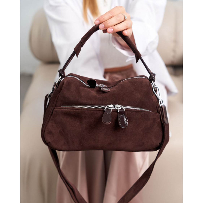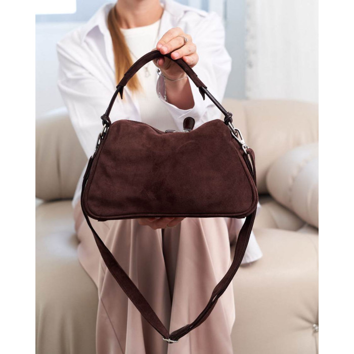 Жіноча сумка K73455, колір коричневий, матеріал сумки натуральна шкіра, замша. Сумка відкривається з..