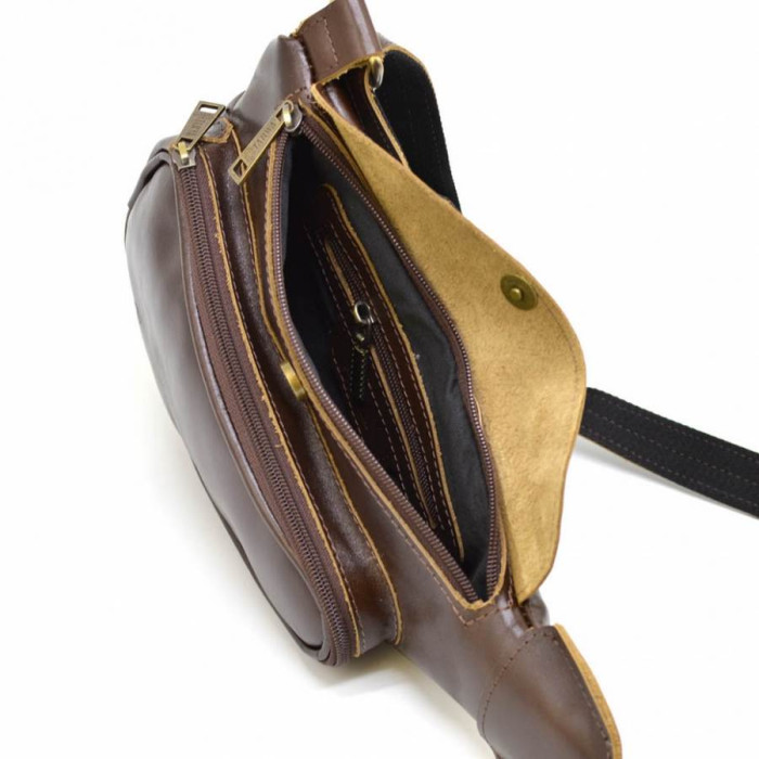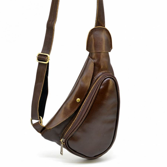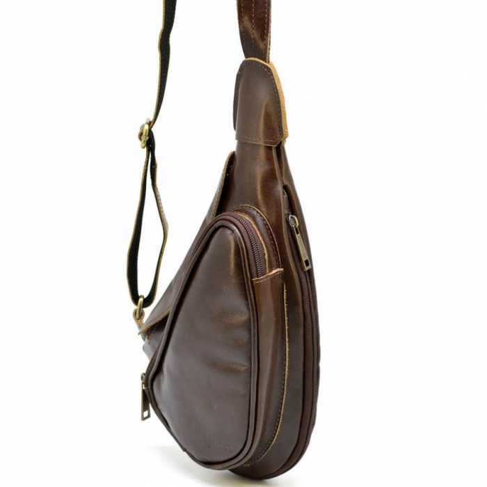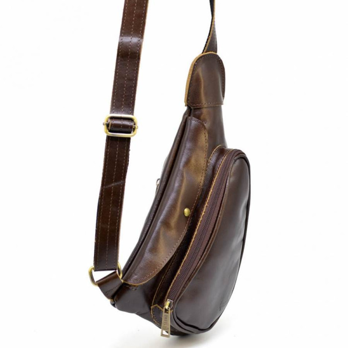 Компактний рюкзак на одне плече ізоготовлен з натуральної шкіри. Стильний, модний і зручний аксесуар на кожен день, також для прогулянок і подорожей. Практичний, з кишенями та відділеннями різної величини, в які помістяться всі необхідні речі, в тому числі, невеликий гаджет, телефон, портмоне, документи, ключі та інші необхідні дрібниці.