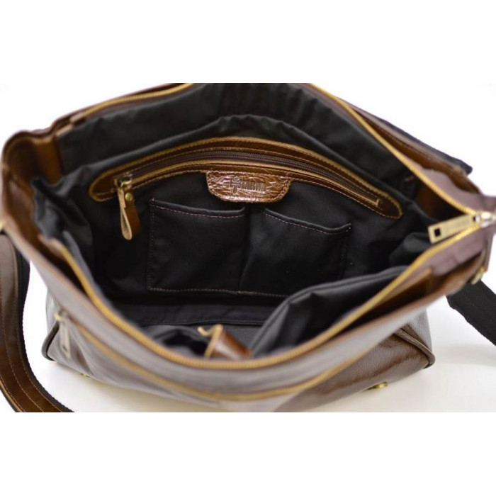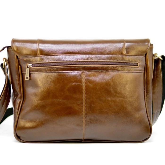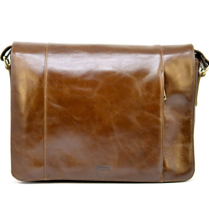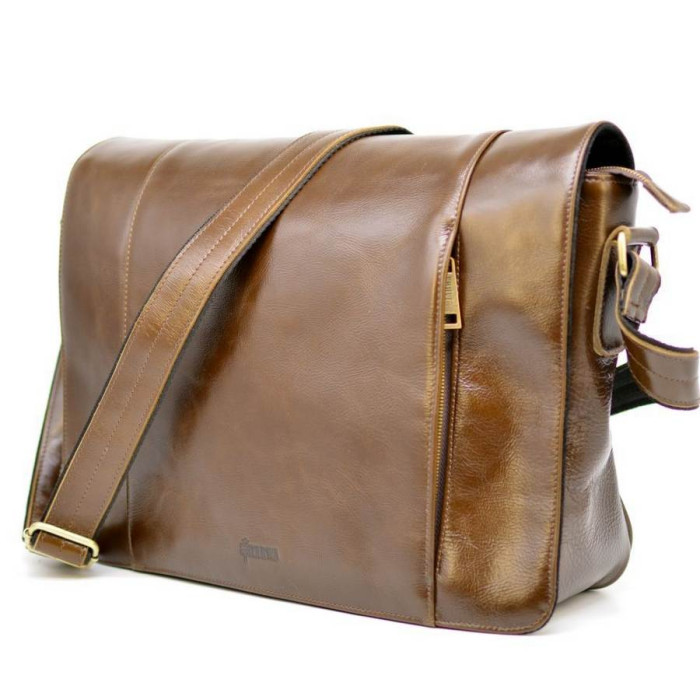 Практична шкіряна сумка-листоноша з натуральної шкіри для чоловіків GQ-7338-3md підійде для навчання, ділових повсякденних поїздок і дорожній варіант. Лицьова сторона аксесуара прикрита шкіряним клапаном на двох магнітних кнопках з врізним вертикальним кишенею на блискавці. Під клапаном також розташована кишеня на блискавці. Задня частина сумки має горизонтальну врізну кишені на блискавки. Під клапаном розташоване основне відділення, в якому є щільна перегородка для зберігання ноутбука або документів формату А4. Внутрішні додаткові відкриті кишені для телефону, портмоне, і ще один великий кишені на блискавки. Сумка оснащена зручним, міцним ремнем через плече для носіння сумки через плече. Фурнітура вироби якісна і надійна. Внутрішнє оздоблення - високоякісний текстиль і шкіра.