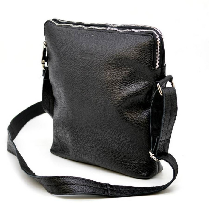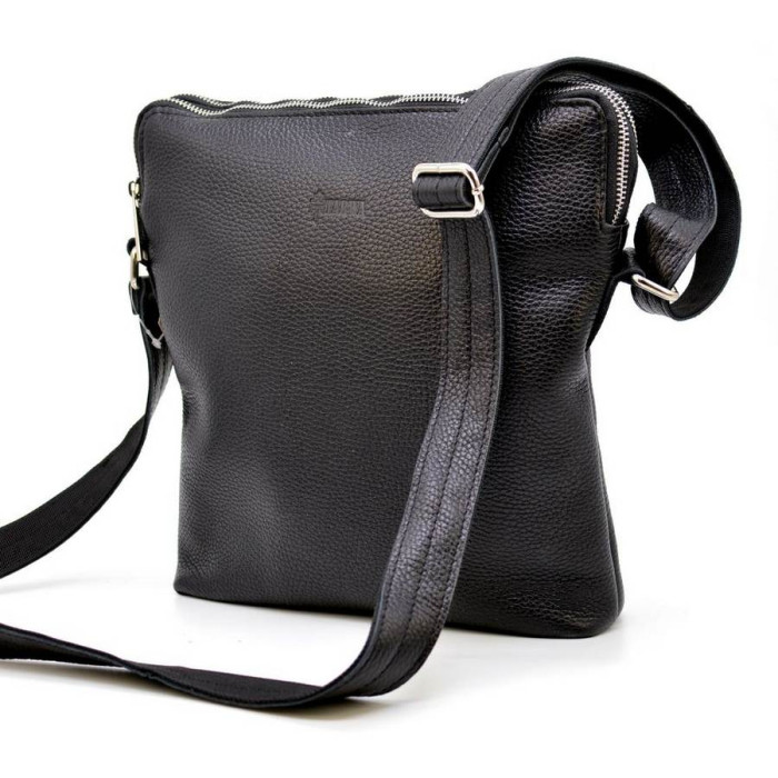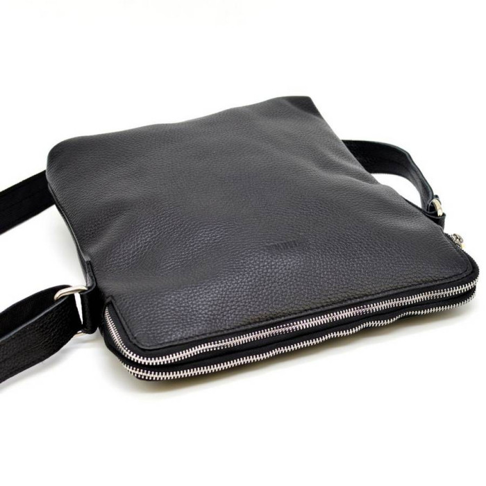 Сумка чоловіча через плече, з натуральної телячої шкірифлотар FA-1048-4lx, від українського виробника TARWA. Зручна і практична модель з лаконічним дизайном, з міцним тканинним підкладів всередині. Виріб має два відділення, кожне застібається на окрему блискавку. Може вміщувати планшет, зошит, блокнот. Усередині сумки є дві кишені: одна врізна з блискавкою, і другий відкритий для телефону. На одній з зовнішніх сторін розташовується ще один врізна кишеня на блискавки. Аксесуар оснащений широким шкіряним ремнем через плече з регулюванням довжини.