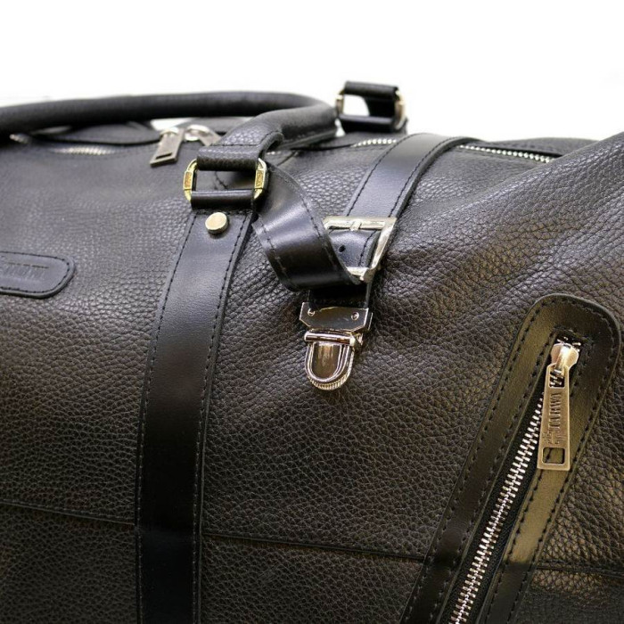 Велика дорожня сумка з натуральної телячої шкіри FA-1633-4lx, від українського бренду TARWA. Завдяки своїй місткості, такий аксесуар стане в нагоді для далеких поїздок і подорожей. Виріб має одне велике відділення, всередині якого розташовуються кишені: два відкритих, і великий виразний, закривається на блискавку. На лицьовій стороні сумки присутній кишеню на блискавці для швидкого доступу всередину до багажу. Застібається аксесуар на блискавку і додатково фіксується двома портфельними засувками-застібками, що надає надійність і безпеку ваших речей. Дві ручки мають зручну округлу форму і кріпляться на металеву фурнітуру. Висота ручок 19 см. У комплектацію входить шкіряний, регульований, плечевий ремінь з наплічником, використання якого допоможе звільнити руки. Захищають дно сумки від стирання і забруднень сферичні гумові ніжки. Фурнітура брендована і надійна. Текстильний щільний підкладка.
