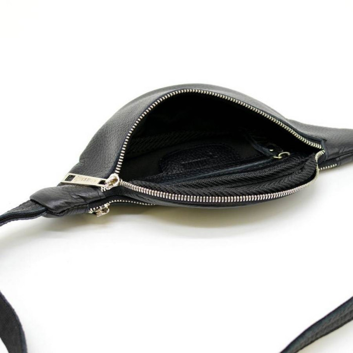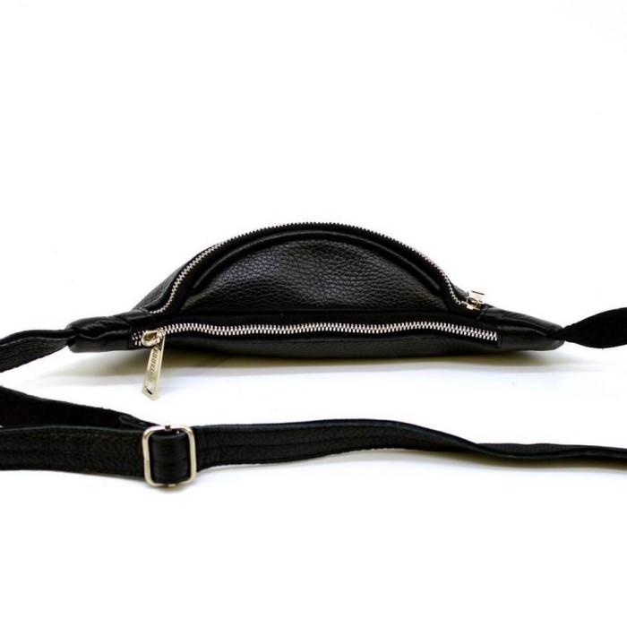 Стильна і дуже модна шкіряна сумка на пояс. Також може використовуватися для носіння через плече, що також актуально в нинішній моді і тенденції. Поясна сумка виконана з якісної натуральної шкіри флотар. Є додатковий місткий кишені на блискавки. Металева фурнітура в кольорі-срібло. Для зручності всі застібки на блискавки. Напоясний ремінь складається з шкіри і текстиля.