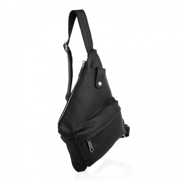Чоловіча сумка слінг чи рюкзак через плече FA-6501-4lx бренд TARWA. Аксесуар незвичайної форми, і максимальною функціональністю при носінні. Буде корисна у поїздках та подорожах. Виріб виготовлений повністю з натуральної телячої шкіри, чорний флотар. Блискавки- срібло.