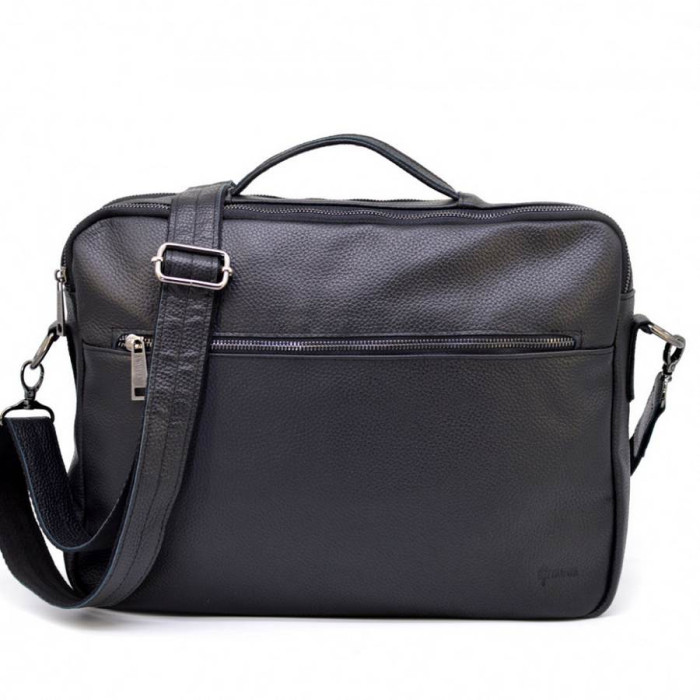 Шкіряна сумка для документів та ноутбука на два відділення TARWA 7290 з натуральної шкіри флотар. Металеві блискавки, підклад тканини.