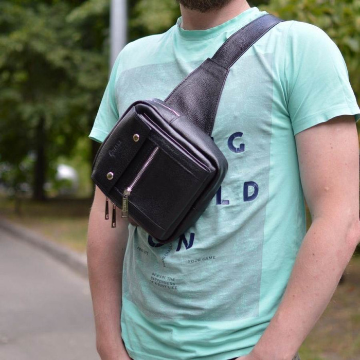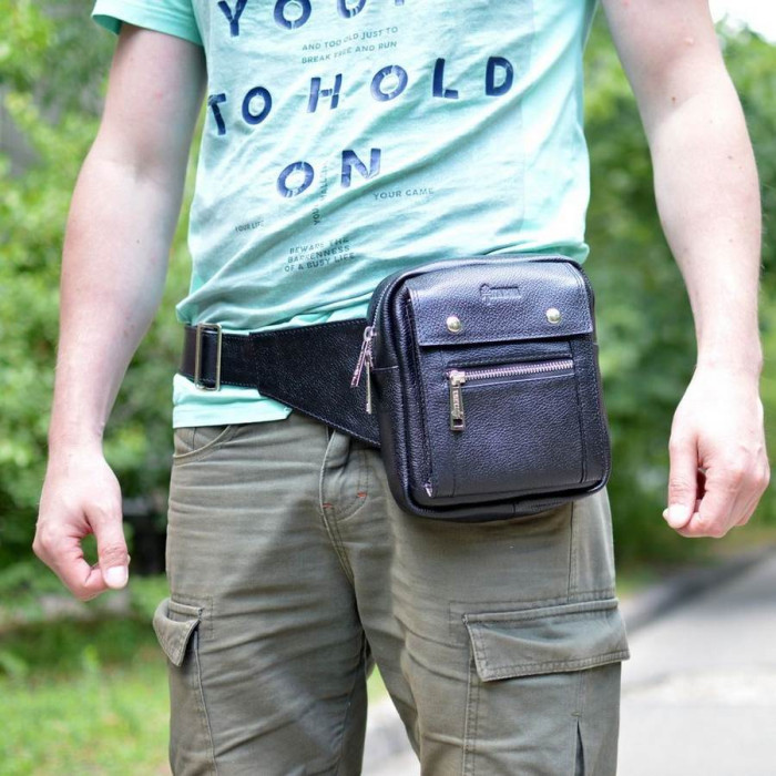 Супер-функціональна чоловіча шкіряна напоясна сумка FA-7777-4lx TARWA! Зручно, практично і неймовірно стильно! Виріб на одне відділення, всередині якого розташовуються один відкритий великий кишеню і одна врізна з блискавкою. На задній стороні є також виразний кишеньку з блискавкою. На лицьовій стороні аксесуара красується об'ємний накладна кишеня, з клапаном на магнітних кнопках, а по центру - горизонтальна металева блискавка, додає особливий шарм виробу. Широкий шкіряний ремінь з регулюванням довжини, сприятиме комфортної носінні сумки як на поясі, так і через плече. Великий металевий фастекс (застібка) порадує не тільки зовнішнім виглядом, але і легкістю застібання. Оригінальний дизайн, якість, прийнятні розміри для щоденного використання - все це буде радувати свого власника на протязі всього часу експлуатації виробу.