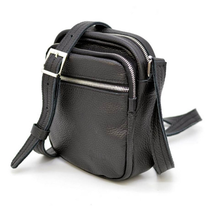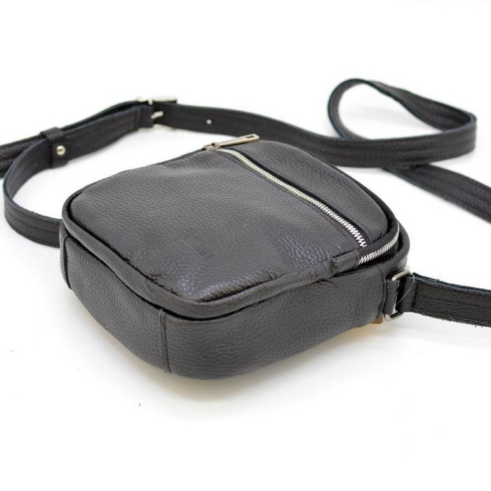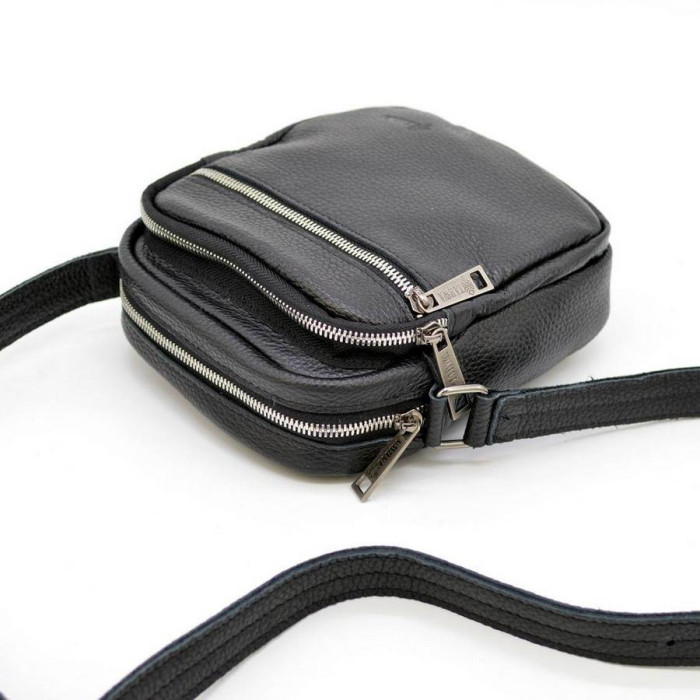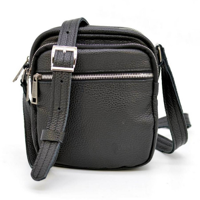 Компактна шкіряна сумка для чоловіків FA-8086-3mds від українського бренду TARWA. Виріб на одне відділення, всередині якого є один врізна кишеня з блискавкою. На лицьовій стороні розташовуються два кишені з блискавками, а на тильній стороні один кишеню. Функціональна сумочка для зберігання всіх необхідних кожен день предметів.Аксесуар оснащений регульованим шкіряним двостороннім ременем.