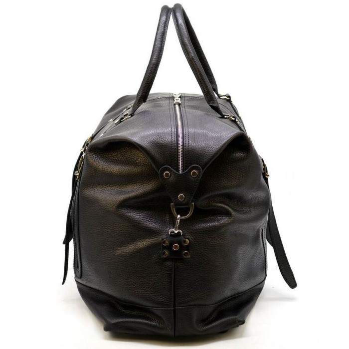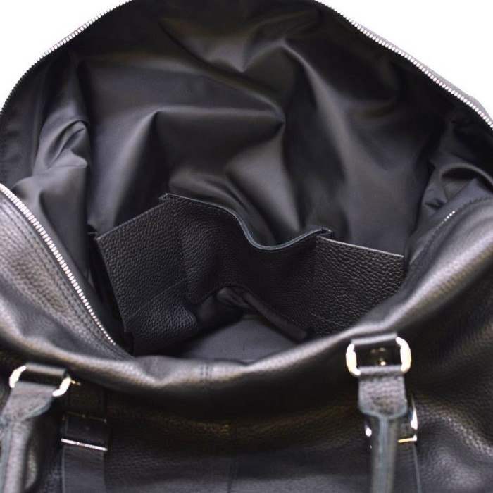 Велика дорожня сумка FA-8310-4lx з натуральної шкіри флотар від українського бренду TARWA. Колір чорний. Має м'яку Безкаркасні форму, підходить для далеких подорожей. Виріб має одне велике відділення, усередині якого розташовується місткий кишеню, що застібається на блискавку. Також є ще два великих відкритих кишені для різних потрібних предметів: телефон, портмоне, візитки, документи, і багато іншого. На лицьовій стороні розташовується виразний вертикальний кишеню з блискавкою і гравірування на шкіряній вставці з логотипом бренду. Шкіряні ремінці, ручки, срібляста фурнітура дуже вдало доповнюють незвичайний дизайн сумочки. Дно вироби оснащено 5 платікових ніжками, що захищають від контакту з іншими поверхнями.