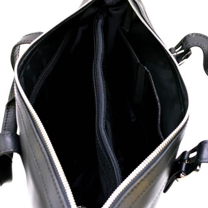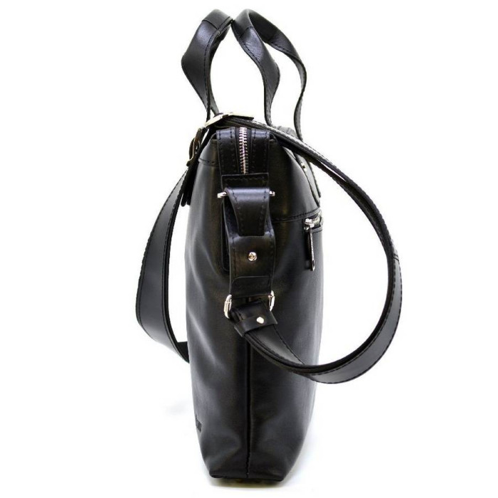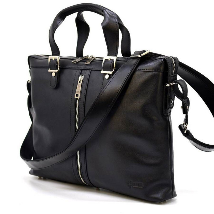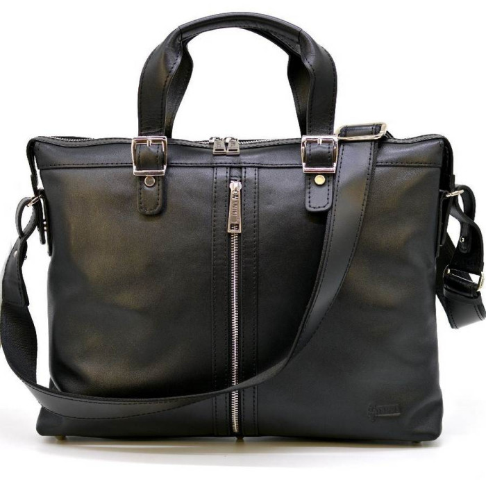 Тонка і містка сумка GA-0041-4lx для ноутбука і документів виконана з натуральної шкіри "наппа" з використанням сучасних тенденцій і якісної фурнітури. Колір фунітури - срібло. Має 1 основне відділення і кишеню-перегородку, застібається на блискавку, яка ділить сумку на 2 окремих відсіку. Також передбачений прорізний потайна кишеня на блискавці і спеціальні кишені-органайзери для смартфона, зарядок і інших дрібниць. Лицьова частина аксесуара прикрашена блискавкою, і може служити додатковим кишенею. На тильній стороні - великий кишеню на металевій блискавці. Сумка також застібається на блискавку, що робить аксесуар максимально надійним. Дві ручки декоровані фальш-застібками і дуже затишно розташовуються в вашій руці. Дно сумки оснащено п'ятьма маленькими металіяескімі ніжками. У комплект входить текстильний ремінь з шкіряними елементами через плече. Підходить для щоденного носіння, стиль-діловий.