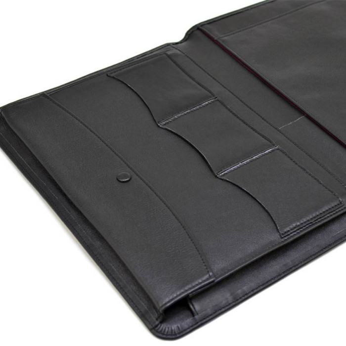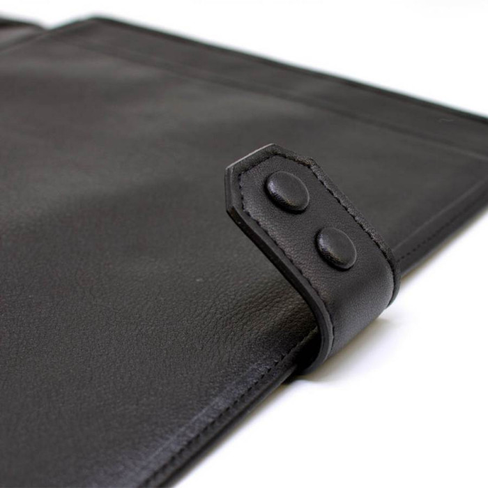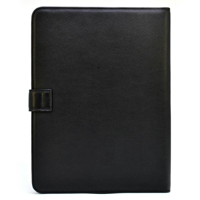 Папка ділова для документів формату A4 GА-0314-4LX, з натуральної телячої шкіри чорного кольору, від українського бренду TARWA. Модель не тільки зручна, але і дуже стильна і статусна. Аксесуар застібається за допомогою шкіряного хлястика з кнопками (їх дві, для регулювання товщини папки, в залежності від того, наскільки багато паперів потрібно покласти). Всередині: три відділення-кишені для паперів, одне з них, саме об'ємне з клапаном і застібкою на кнопку. Також є три шкіряних маленьких кишеньки для пластикових карт або візиток, і одне кріплення для ручки, текстильний підклад тільки всередині великих кишень.