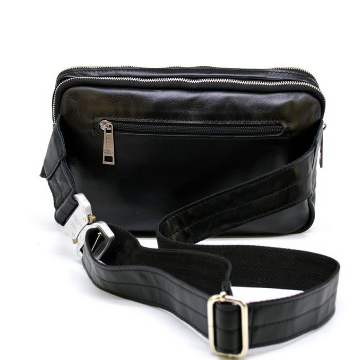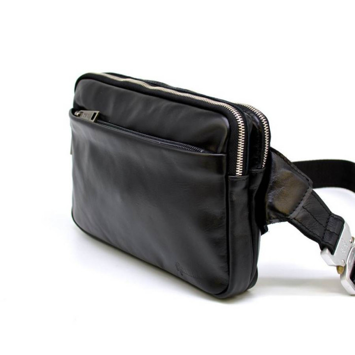 Напоясна сумка з натуральної телячої шкіри GA-0741-4lx, від українського виробника TARWA. Стильний аксесуар на кожен день, в поїздці і на прогулянці. Сумка складається з двох роздільних великих відділень, застібаються на блискавки. Зовнішню сторону доповнює кишеню практично на всю лицьову поверхню, також застібається на блискавку. На задній стороні є врізна кишеня. Ремінь виконаний повністю зі шкіри з текстильної основою. Застібка (фастекс) металева і надійна. Текстильний міцний підкладка. Дана модель є збільшеною версією сумки GA-0704-3md.