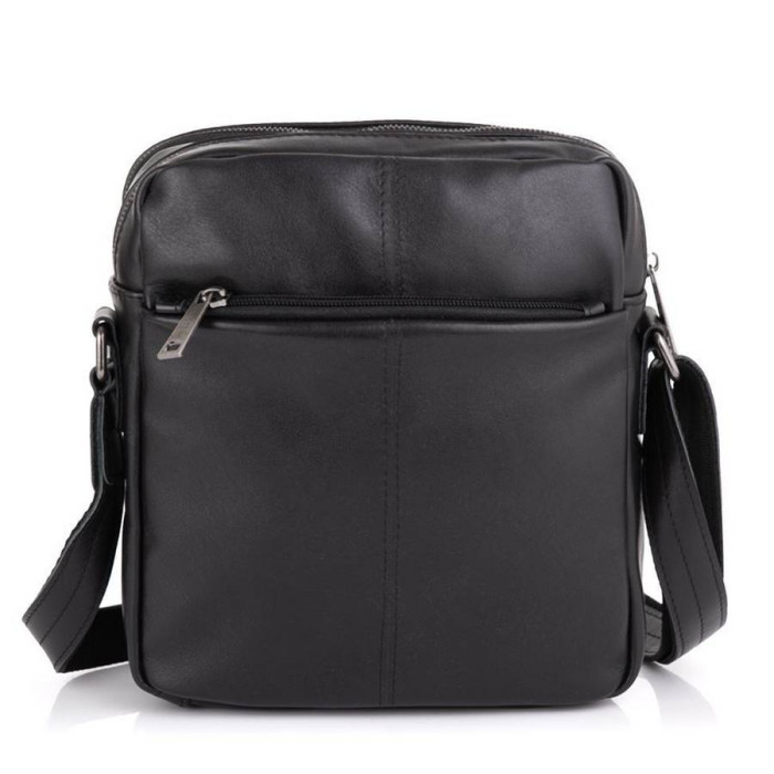 Чоловічий месенджер з натуральної телячої шкіри GA-60122-3md від українського бренду TARWA. Універсальна сумка для повсякденного носіння. Вміщує в себе планшет, портмоне, документи формату А5 і інші необхідні предмети. Виріб состот з двох відділень, застібаються на окремі блискавки. Усередині великого по-розміром відділення є два відкритих кишеньки для дрібних предметів, і врізна кишеня на блискавки. Дизайн лицьової частини аксесуара доповнює об'ємний накладна кишеня з клапаном на металевих кнопках. На задній стороні сумки є врізна кишеня на блискавки. Виріб оснащений шкіряним плечевим ременем, завдяки якому, носити сумку буде дуже зручно.