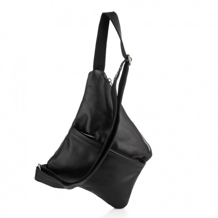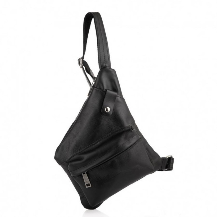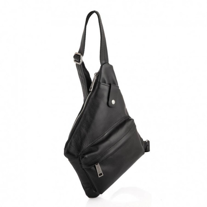 Чоловічі сумки слінг або рюкзак через плече GA-6501-4lx бренд TARWA. Аксесуар незвичайної форми, і максимальною функціональністю при носінні. Буде корисна у поїздках та подорожах. Виріб виготовлено повністю з натуральної шкіри, чорна наппа. Блискавки- срібло.