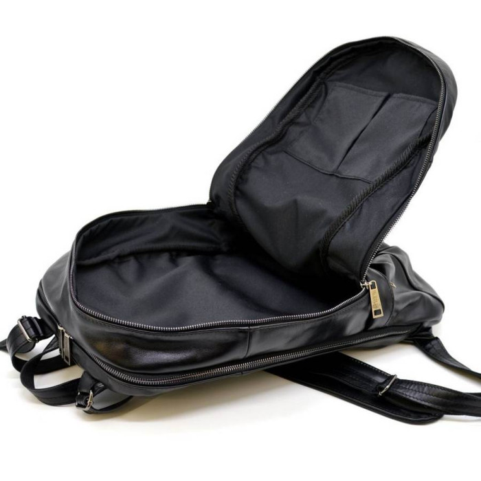 Стильний шкіряний чоловічий рюкзак TARWA 7340 створений з вищих сортів шкіри і якісної фурнітури. Ідеальний аксесуар для молодих, швидких, динамічних, які цінують якість і стіль.Два відділення на блискавках, повністю шкіряні шлейки з регулюваннями довжини і розвантаження напруги, тактичними нашивками для аксесуарів.