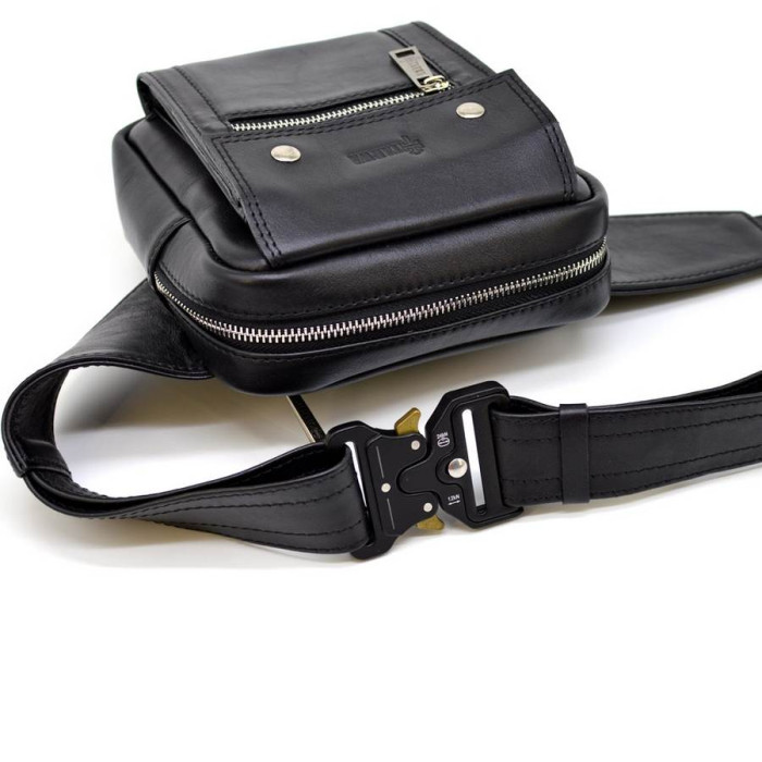 Супер-функціональна чоловіча шкіряна напоясна сумка FA-7777-4lx TARWA! Зручно, практично і неймовірно стильно! Виріб на одне відділення, всередині якого розташовуються один відкритий великий кишеню і одна врізна з блискавкою. На задній стороні є також виразний кишеньку з блискавкою. На лицьовій стороні аксесуара красується об'ємний накладна кишеня, з клапаном на магнітних кнопках, а по центру - горизонтальна металева блискавка, додає особливий шарм виробу. Широкий шкіряний ремінь з регулюванням довжини, сприятиме комфортної носінні сумки як на поясі, так і через плече. Великий металевий фастекс (застібка) порадує не тільки зовнішнім виглядом, але і легкістю застібання. Оригінальний дизайн, якість, прийнятні розміри для щоденного використання - все це буде радувати свого власника на протязі всього часу експлуатації виробу.
