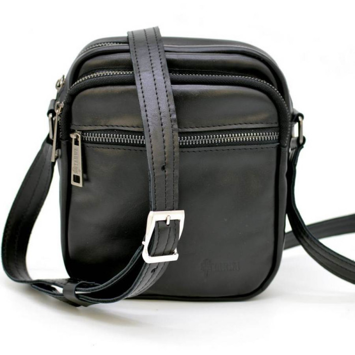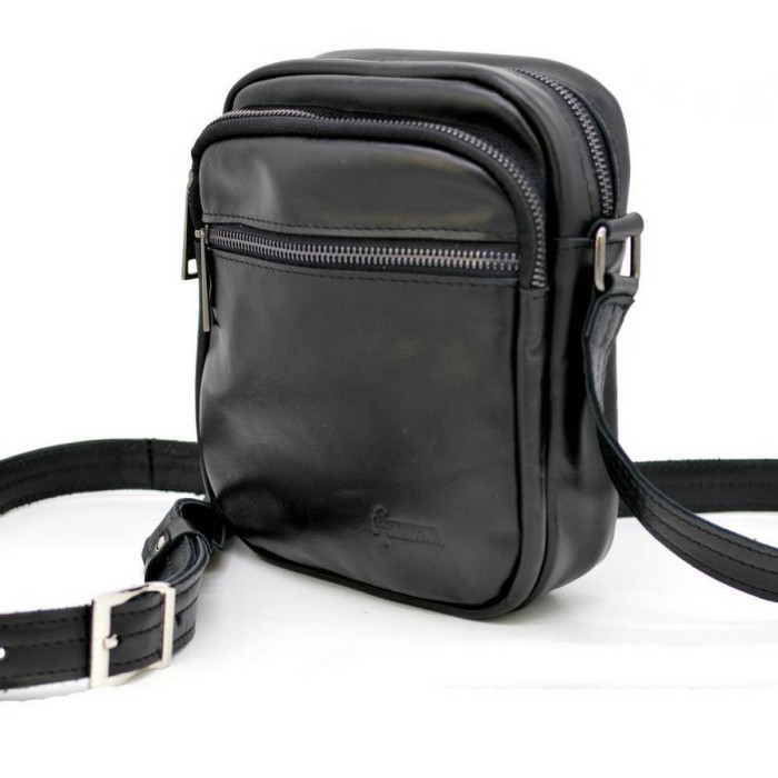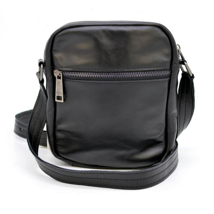 Чоловіча шкіряна сумка через плече GA-8086-3mdb від українського бренду TARWA. Маленька, але містка сумочка, в якій Ви з легкістю зможете розмістити свої найнеобхідніші речі. Виріб на одне відділення, з внутрішньою кишенею врізним з блискавкою. На лицьовій стороні є дві кишені з блискавками, і також на тильній стороні один кишеню. Аксесуар оснащений регульованим шкіряним двостороннім ременем.