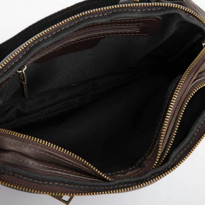 Сумка шкіряна коричнева гладка гладка GC-0741-3md TARWA. Стильний аксесуар на кожен день, у поїздці та на прогулянці. Сумка складається з двох окремих великих відділень, що застібаються на блискавці. Зовнішній бік доповнює кишеню практично на всю лицьову поверхню, що також застібається на блискавку. На задній стороні є врізна кишеня. Ремінь виконаний повністю зі шкіри із текстильною основою. Застібка (фастекс) металева та надійна. Текстильна міцна підкладка. Ця модель є збільшеною версією сумки GA-0704-3md.