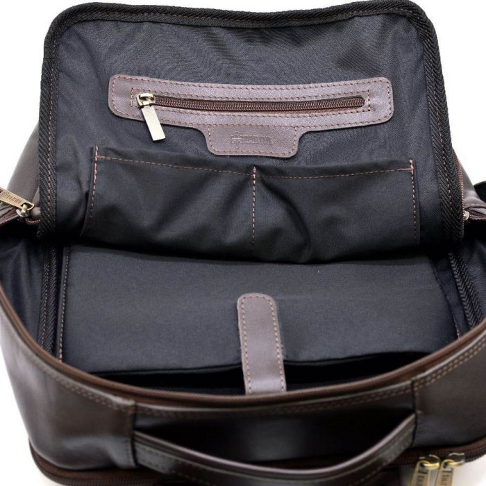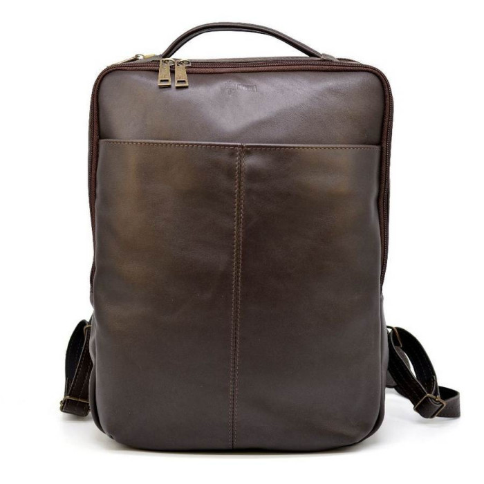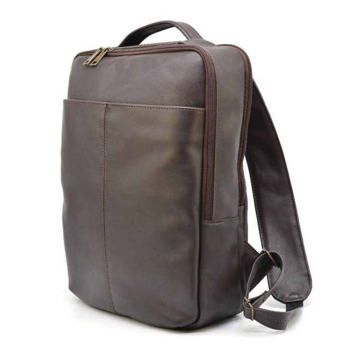 Міський шкіряний рюкзак для чоловіків TARWA GC-7280-3md з високоякісної шкіри "Наппа". Колір коричневий. Зручний і практичний аксесуар, прекрасне рішення для повсякденного носіння. Рюкзак складається з двох відділень, які закриваються на блискавку. Кожне з відділень має вільний простір, в якому можна зберігати ноутбук, електронну книгу або планшет, смартфон, портмоне, ключі, блокнот, документи та багато іншого. Зовні на передній стінці є кишеня накладного типу, який застібається на магнітну кнопку. Щільна підкладка і надійна, якісна фурнітура передбачає довгий служіння своєму господареві.