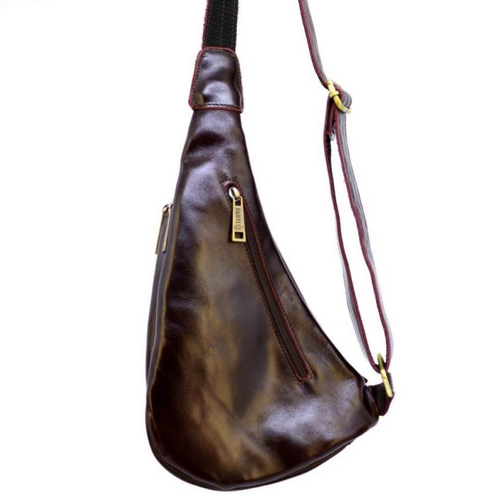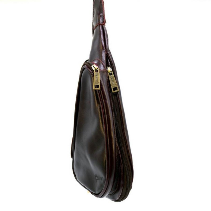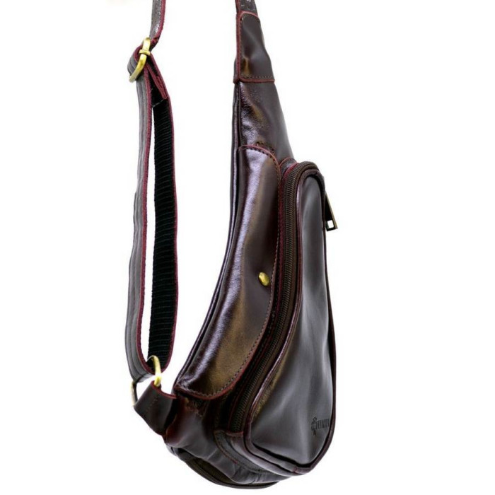 Міні-рюкзак з натуральної телячої шкіри, в надзвичайно красивому кольорі, на одне плече GM-3026-3md від українського бренду TARWA. Також, родзинкою даного рюкзака є його ергономічна форма, що виділяє його з різноманіття аксесуарів шкіргалантереї. Виріб складається з двох відділень, в одному з яких, є дві кишені: виразний і відкритий. Також, на спинці рюкзачка є ще один врізна кишеня. Аксесссуар оснащений додатковою блискавкою-разшірітелем глибини вироби. Рюкзак виконаний з якісних матеріалів і фурнітури. Всередині присутня міцний тканинний підкладка. Моношлейка рюкзачка повністю шкіряна з регулюванням довжини. Красивий і зручний аксесуар на кожен день, для прогулянок і подорожей.
