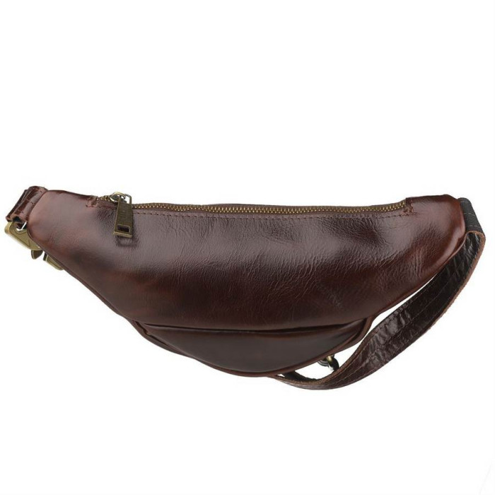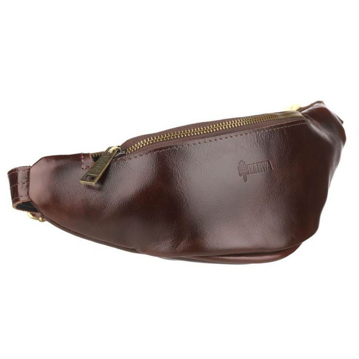 Маленька бананка із натуральної телячої шкіри коричневий глянець GQ-3034-3md від українського бренду TARWA. Модель дуже акуратна і стане Вашим незамінним супутником як у поїздках та подорожах, так і щодня. У такій сумочці Ви зможете розмістити необхідні особисті речі: смартфон, портмоне, паспорт, ключі. Два відділення на блискавці, всередині є кишеня врізна. Металева фурнітура у кольорі латунь. Для зручності усі застібки на блискавці. Напоясний регульований ремінь складається зі шкіри та текстилю. Підкладка з міцної якісної тканини.