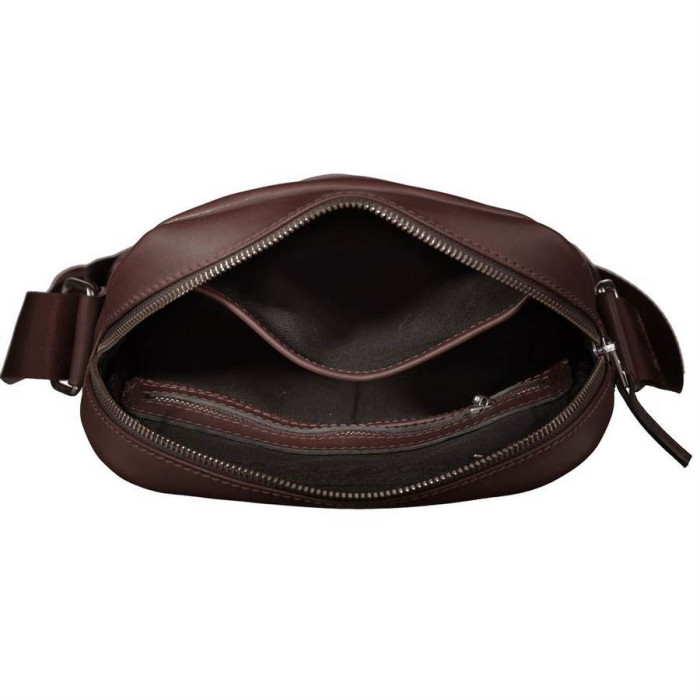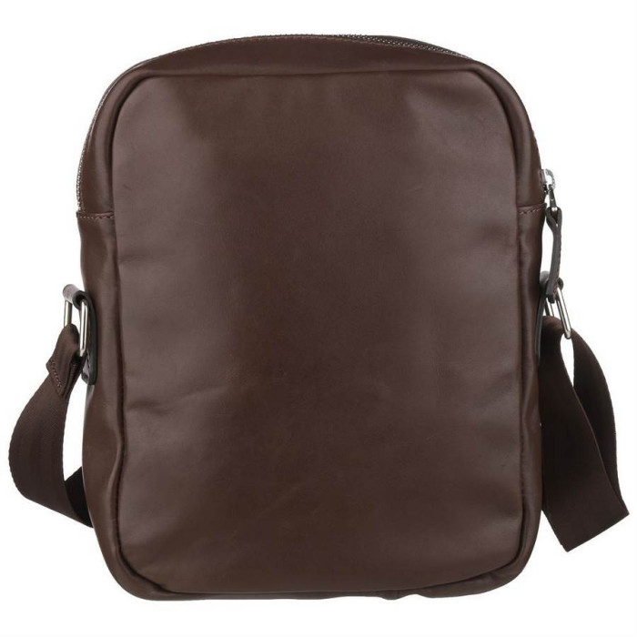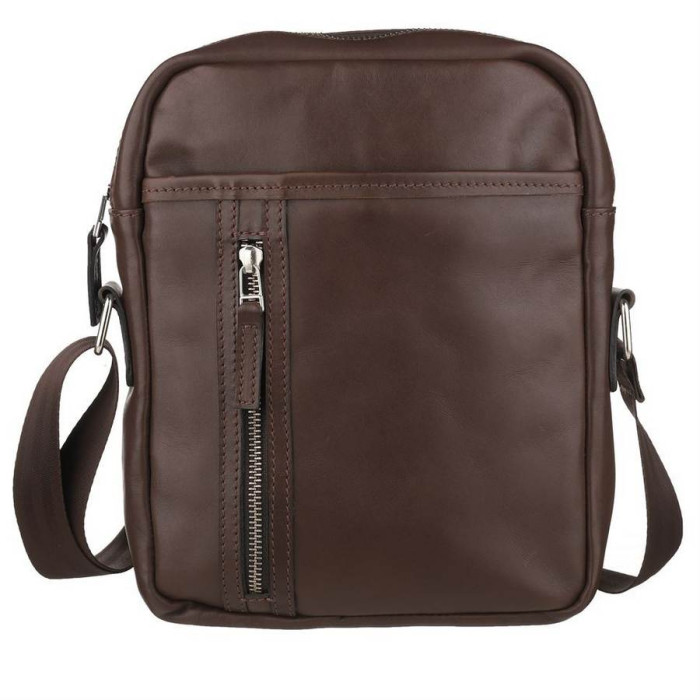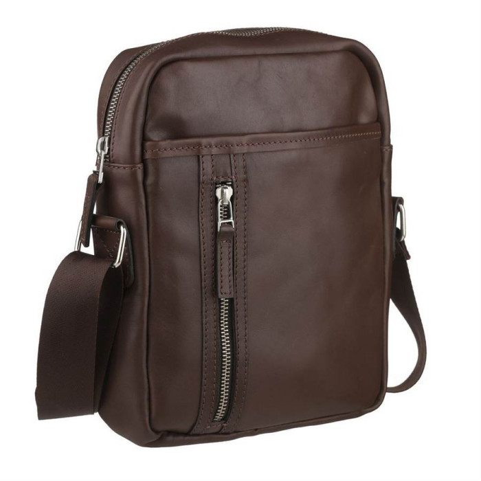 Компактна сумка месенджер M110br John McDee, із натуральної телячої шкіри коричневого кольору, для чоловіків. Виріб має одне основне відділення на блискавці, всередині якого є дві кишені: відкрита велика під телефон і портмоне і одна кишеня врізна на блискавці. На лицьовій стороні сумки розташовується велика плоска кишеня на магнітній кнопці, на якій є ще й вертикальна блискавка/кишеня. Завдяки наплечному ременю з текстилю з регулюванням довжини аксесуар комфортно носиться на плечі.