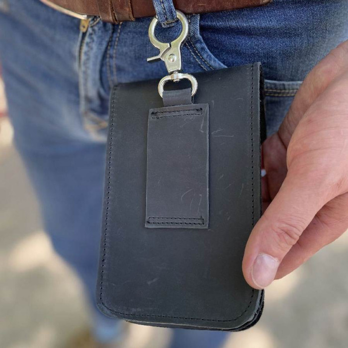 Дану модель за допомогою карабіна можна прикріпити до вашого одягу, наприклад штанів. Сумка-чохол на пояс виконана з натурального матеріалу, тому Ви можете бути впевнені у високій якості та довгостроковості товару. Чохол має 2 внутрішні відсіки, клямку, карабін.