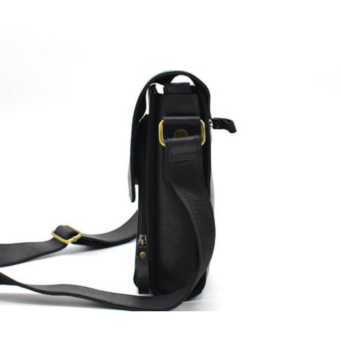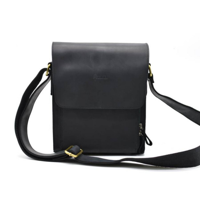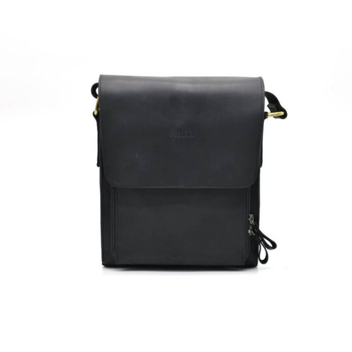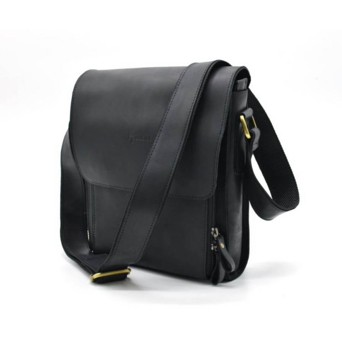 Компактна чоловіча сумка через плече RA-3027-3md, з натуральної шкіри crazy horse. Виріб складається з одного основного відділення, всередині якого є кишеня на блискавці для документів і ще два маленьких накладних кишені для всякої дрібниці. Сама сумка застібається на блискавку і зверху накриваетсяч клапаном з магнітною кнопкою. А під клапаном ховається дуже зручний і практичний відкидний кишені на блискавки з внутрішніми шкіряними відсіками, наприклад для пластикових карт. На задній стороні виробу знаходиться ще один кишені на блискавки. Сумка оснащена шкіряним регулюється ремінцем з текстильної основою, яка захищає від розтягування. Особливий шарм аксесуару надає матова чорна шкіра, вичинки crazy horse.