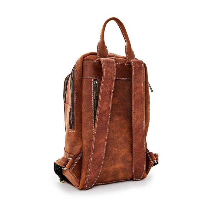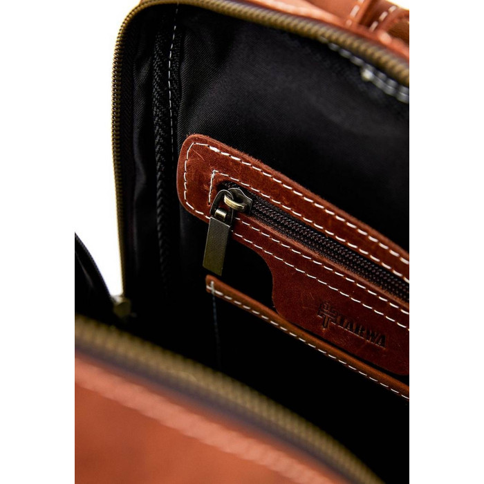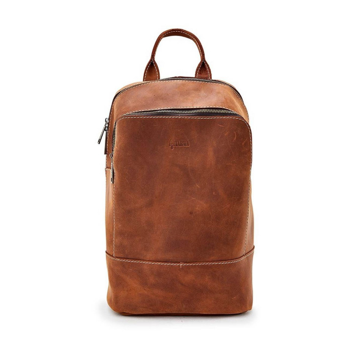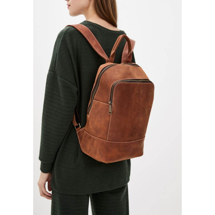 Жіночий рюкзак з натуральної телячої шкіри рудого кольору, TARWA RB-2008-3md середнього розміру, від українського виробника. Виріб складається з двох відділень, застібаються кожне на окрему блискавку. Всередині є кілька відкритих кишень для дрібних предметів. Шлейки повністю шкіряні з регулюванням довжини. Зверху присутнє маленька ручка для перенесення аксесуара в руці. Усередині щільний текстиль. Гарний аксесуар для дівчат і жінок, призначений для щоденного використання.