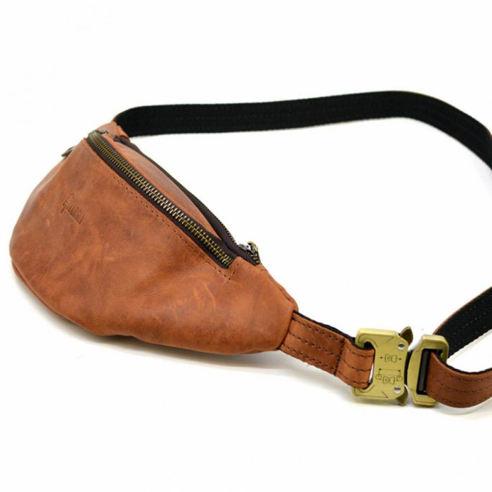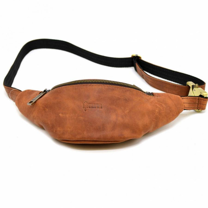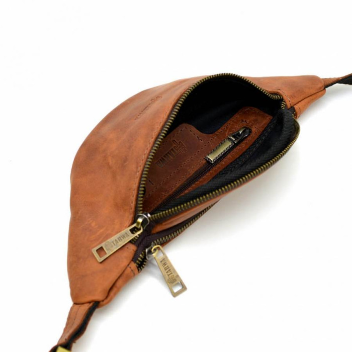 Напоясна маленька сумка з натуральної кінської рудої шкіри RB-3034-3md від українського бренду TARWA. Атрибут стане Вашим супутником як в поїздках і подорожах, так і просто на кожен день. У цій сумочці Ви зможете розмістити багато дрібних і необхідних Вам особистих предметів: смартфон, маленьке портмоне, права, ключі. Аксесуар має два відділення, які застібаються на окрему блискавку, з внутрішнім врізною кишенею, також на блискавки. Металева фурнітура в кольорі темний нікель. Напоясний регульований ремінь складається з шкіри і текстиля, що запобігає його розтягування. Підклад виконаний з міцної тканини. У виробі використана дуже надійна металева застібка - фастекс.