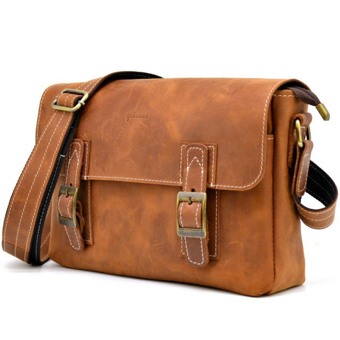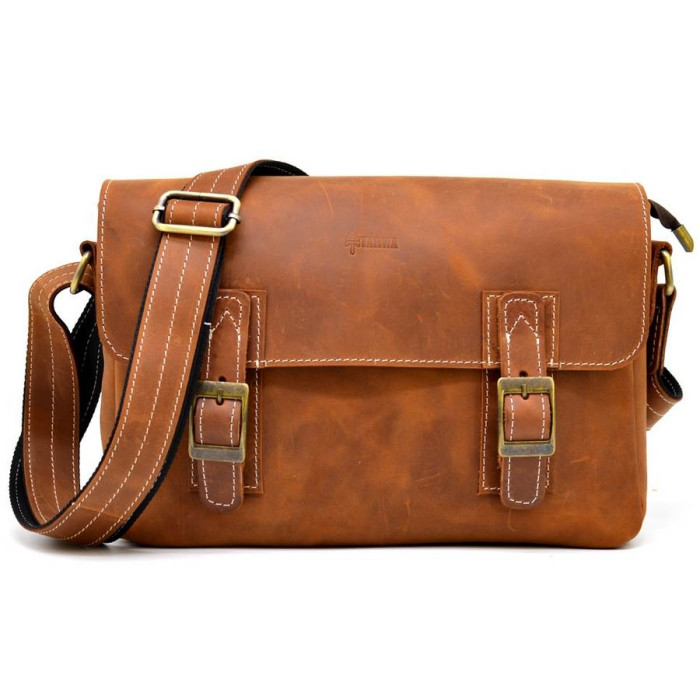 Стильний вінтажний месенджер унісекс від бренду TARWA. Якісна натуральна кінська шкіра крейзі хорс. Продуманий цікавий дизайн в рудому виконанні. Відмінний варіант для щоденного користування.