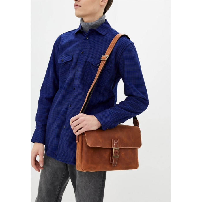 Багатофункціональна сумка месенджер з якісної натуральної шкіри крейзі хорс в рудому кольорі. Сумка доступна в коричневому, чорному, синьому кольорах шкіри, а також в комбінації з тканиною канвас.
